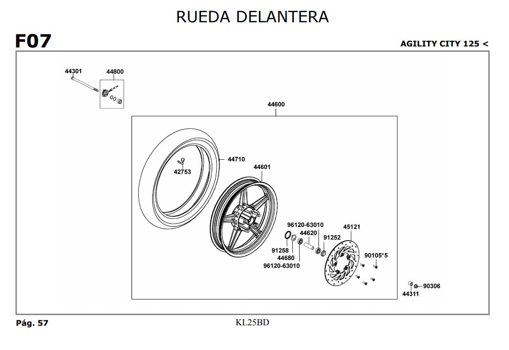 Rueda delantera 16" Kymco Agility city 125 2007-2014