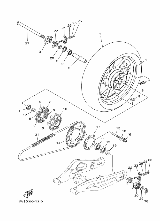 Eje rueda trasera Yamaha Mt07 2015 - 2017