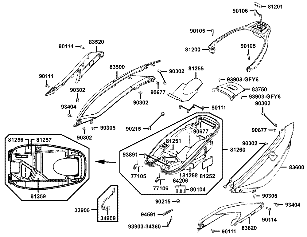 Cacha central derecha Kymco xciting 500, I evo, i r abs, i (afi) 2005 - 2017